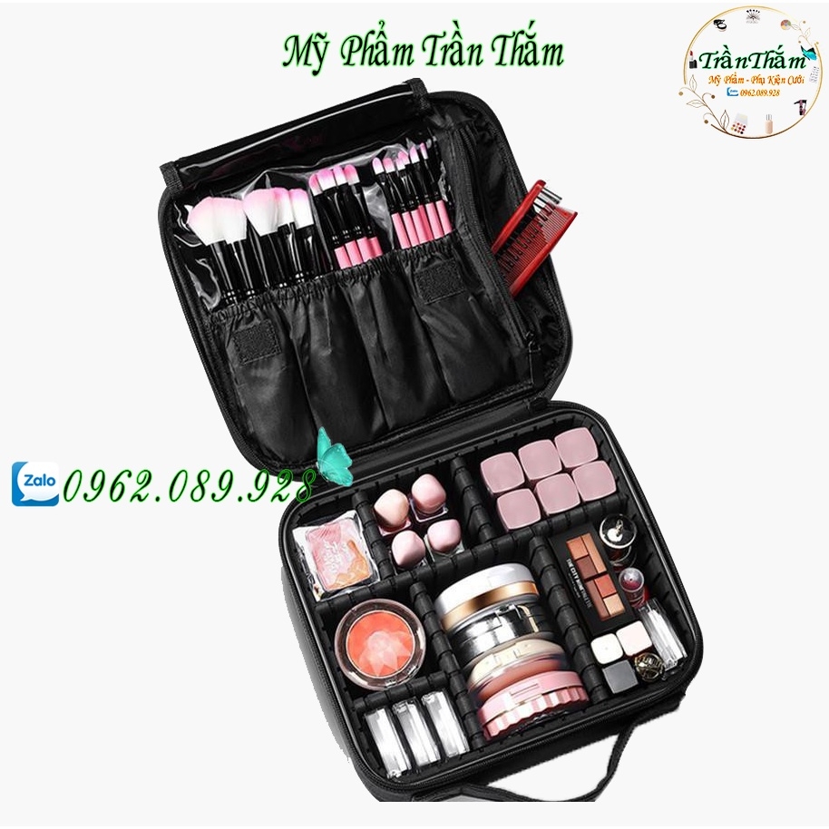 - Kích thước SIZE LỚN : 41 X 29 X 12CM (Chất liệu Vải Polyester, Có 2 ngăn để mỹ phẩm và máy làm tóc, Có 01 dây đeo, Có 02 dây đỡ nắp, Mặt lưng có quai kẹp vào tay kéo của Vali).- Cốp Size BÉ : 25*23*10cm ( Cốp Này chỉ có 1 ngăn để mỹ phẩm duy nhất, không quai đeo và nhỏ chỉ cho cá nhân)Mầu đen chất liệu cứng cáp có thanh ngăn chắn, kéo khoá, dây đeo tiện đựng đồ make và mang đi nhé #copvai#copdungdotrangdiem - Cốp có các ngăn phân loại mỹ phẩm dễ dàng và các ngăn có thể linh động thay đổi kích thước với các vật dụng cần bảo quản bên trong.- Có ngăn đựng cọ riêng biệt tránh hư hỏng đầu lông cọ.- Có ngăn đựng máy uốn, máy kẹp tóc rất tiện dụng.- Tích hợp dây đeo.- Chất liệu Vải Polyester cao cấp rất chắc chắn. sử dụng bền đẹp, dài lâu.MỸ PHẨM TRẦN THẮM CAM KẾT• Sản phẩm 100% giống mô tả. Hình ảnh sản phẩm là ảnh thật do shop tự chụp và giữ bản quyền hình ảnh• Đảm bảo chất lượng 100% chính hãng nhập khẩu chính ngạch• Sản phẩm được kiểm tra kĩ càng, cẩn thận và tư vấn nhiệt tình trước khi gói hàng giao cho Quý Khách• Hàng có sẵn, giao hàng ngay khi nhận được đơn • Hoàn tiền nếu sản phẩm không giống với mô tả• Giao hàng trên toàn quốc, nhận hàng trả tiền • Hỗ trợ đổi trả theo quy định của ShopeeChuyên Mĩ phẩm cao cấp, Phụ kiện cô dâu#copvaitrangdiem #copvai