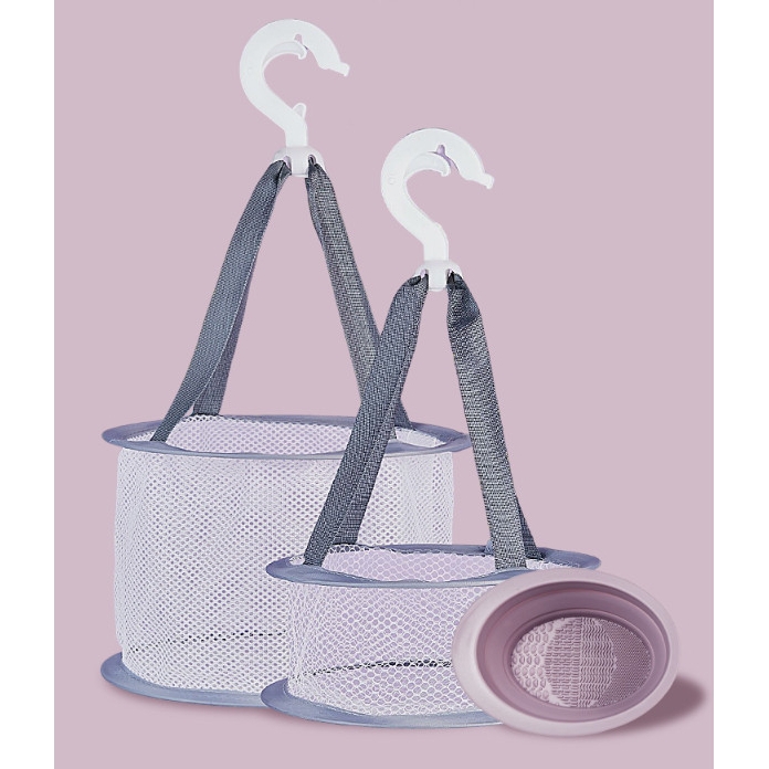 Cọ trang điểm là dụng cụ tiếp xúc trực tiếp với da mặt, vi khuẩn sẽ phát triển trên lông cọ, điều này sẽ ảnh hưởng đến tình trạng da. Rửa cọ một cách nhanh chóng, vừa tiện lợi, vừa sạch sẽ, vừa chăm sóc sắc đẹp và sức khỏe của bạn !Ngoài ra để tránh ẩm mốc hư hại cọ hãy phơi cọ, mút thật ráo trước khi sử dụng nhé* Công dụng: Tăng tuổi thọ cọ khi được làm sạch, dụng cụ hỗ trợ làm sạch cọ nhanh chóng, hạn chế vi khuẩn tiếp xúc với da1. Mô tả: Dụng cụ vệ sinh cọ- Chuyên dụng dùng cho việc hỗ trợ làm sạch cọ trang điểm, giữ độ bền và chất lượng đầu lông của cọ- Chất liệu chất lượng cao rất an toàn, mềm dẻo tái sử dụng và bền - Dung tích lớn, làm sạch sẽ nhanh chóng, tiết kiệm thời gian- Có chứa 4 rãnh hoạ tiết silicon khác nhau nhằm giúp làm sạch tối ưu cho tất cả kích thước cọ+ Lưới rãnh dọc: hỗ trợ đầu chổi loại bỏ các vật thể lạ hay các vết phấn bị bón cục đông cứng+ Chấm tròn nhỏ: gia tăng hiệu quả của quá trình làm sạch đầu cọ đối với các vết bẩn cứng đầu+ Sóng ngang: làm sạch cọ tỉ mỉ hơn, thúc đẩy tối đa hòa tan cặn mỹ phẩm còn dư thừa+ Đinh nhỏ và bán nguyệt: là bước cuối cùng, đảm bảo cho đầu chổi được sạch nhất, loại bỏ đi các chất bẩn còn sót lại mà các bước trước chưa làm sạch tới* Thông số sản phẩm - Chất liệu: Silicon cao cấp- Màu: Hồng, Xanh, Trắng, Xám- Kích thước: D 14.7cm x R 11cm (Cao: 1.8 - 4.2 cm)* Cách sử dụng- Bật theo chiều bát có sẵn- Đổ 1/2 nước sạch và dung dịch làm sạch cọ- Làm ướt cọ, ngâm cọ, massage cọ, rửa lại với nước sạch- Rửa sạch chậu, để khô, tránh ẩm mốc2, Giỏ phơi khô cọGiỏ lưới phơi khô cọ mini đa năng, hong khô cọ, mút, bông, khăn, các vật dụng cần phơi khô khácLưới treo tăng lưu lượng khí, giúp làm khô nhanh. Giỏ đi kèm với một móc cơ chế chống gió, chống rối xoay 360° * Công dụng: Hỗ trợ các dụng cụ trang điểm được khô ráo, tránh rơi rớt các vật nhỏ, vệ sinh hơn khi để vào giỏ- Chất liệu: Lưới polyester không độc hại, mềm, thoáng khí- Màu: Hồng & Xám- Kích thước: Đường kính 20 cm - Chiều cao 12 cm* Cách sử dụng- Treo giỏ ở nơi cố định- Bỏ vật muốn hong khô vào trong lồng giỏ- Khi không sử dụng, gấp gọn cất vào nơi khô ráo- Vệ sinh giỏ định lì với xà phồngĐÁNH GIÁ SẢN PHẨM0 trên 5