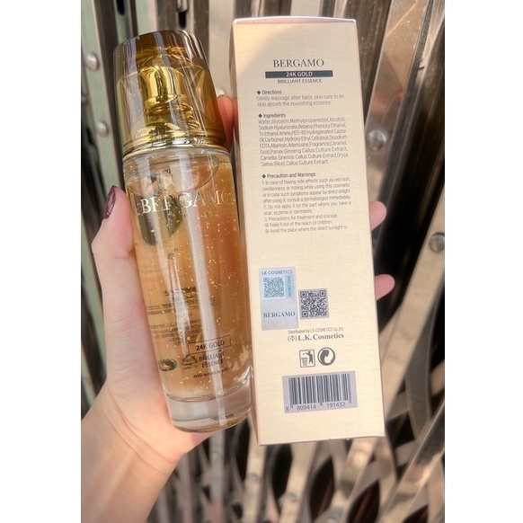 Tinh chất dưỡng da Bergamo 24K Gold Brilliant và White Vita Luminant Hàn Quốc 110mlTinh chất dưỡng da Bergamo là sản phẩm chăm sóc da của hãng Bergamo đến từ Hàn Quốc – có vai trò như một chiếc chìa khóa giúp da thẩm thấu sâu và nuôi dưỡng làn da một cách tối ưu. Các tinh chất thấm sâu vào lớp biểu bì, nuôi dưỡng da trắng mịn, cho bạn làn da tươi trẻ căng tràn sức sống.PHÂN LOẠI1. Tinh chất Bergamo 24K Gold Brilliant Essence (Vàng)- Có chiết xuất từ nhân sâm, trà xanh và tinh chất vàng giúp phục hồi da, cho bạn làn da mịn màng và săn chắc, tăng sức đề kháng cho da, thúc đẩy làn da tự sinh sản collagen, tái tạo làn da trẻ trung.- Tinh chất Bergamo vàng 24k được chế xuất dạng gel trong suốt, không quá lỏng, giúp thẩm thấu nhanh vào da, làm se khít lỗ chân lông, làm mờ các vết nám, đem lại làn da khỏe khoắn, tràn đầy sức sống.- Tinh chất vàng 24K có khả năng chống oxy hóa cao, ngăn ngừa sự xuất hiện của nếp nhăn, ngăn cản quá trình lão hóa da.2. Tinh chất Bergamo White Vita Luminant Essence (Trắng)- Tinh chất Bergamo trắng, tổng hợp nhiều loại vitamin, axitamin, … nuôi dưỡng làn da trắng hồng sâu từ bên trong, cho bạn làn da căng mướt và sáng màu da.- Tinh chất collagen giúp tăng độ đàn hồi, hạn chế tình trạng xuất hiện các nếp nhăn, tái tạo làn da bị lão hóa, giúp se khít lỗ chân lông và làm mờ vết thâm nám.CÁCH SỬ DỤNG HIỆU QUẢ- Sử dụng vào mỗi buổi sáng và tối để có được làn da trắng khỏe, mịn màng.- Sau khi làm sạch da và sử dụng nước cân bằng da, thoa 1 lượng tinh chất vừa đủ lên mặt, vỗ nhẹ cho tinh chất thẩm thấu vào da.- Nên dùng kết hợp chung với kem dưỡng da để đạt hiệu quả tối ưu.MỸ PHẨM TRẦN THẮM CAM KẾT• Sản phẩm 100% giống mô tả. Hình ảnh sản phẩm là ảnh thật do shop tự chụp và giữ bản quyền hình ảnh• Đảm bảo chất lượng 100% chính hãng nhập khẩu chính ngạch• Sản phẩm được kiểm tra kĩ càng, cẩn thận và tư vấn nhiệt tình trước khi gói hàng giao cho Quý Khách• Hàng có sẵn, giao hàng ngay khi nhận được đơn • Hoàn tiền nếu sản phẩm không giống với mô tả• Giao hàng trên toàn quốc, nhận hàng trả tiền • Hỗ trợ đổi trả theo quy định của ShopeeChuyên Mĩ phẩm cao cấp, Phụ kiện cô dâu#kemlot #lot #kemlotbegamo #kemlotvang #kemlot24k #kemlottrang